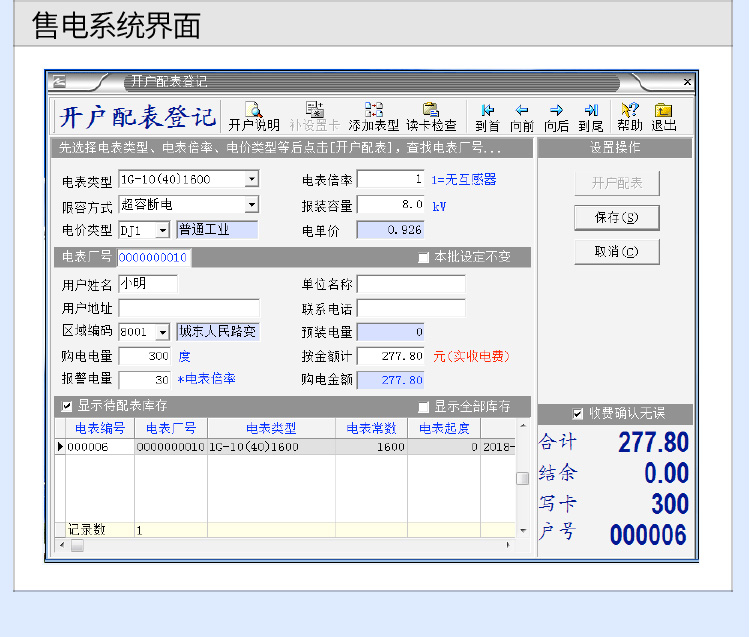 (5)預付費電度表的型號、額定功率、顯示方式、重量和外形尺寸,以及電能表的系統操作界面等具體如下。