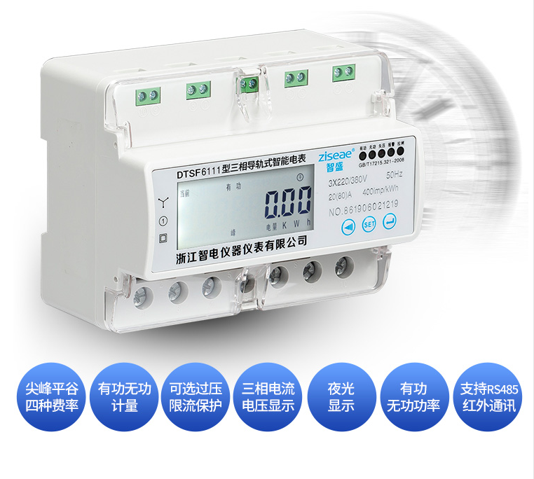 三相導(dǎo)軌式多費(fèi)率電能表DTSF6111-7系我公司采用微電子技術(shù)計(jì)量電能,采用進(jìn)口集成電路,應(yīng)用數(shù)字采樣處理技術(shù)及SMT工藝等先進(jìn)技術(shù)研制開(kāi)發(fā)的電子式電能表。能直測(cè)量電能計(jì)量中正向有功電能,7位LCD顯示器顯示有功用電量,具有可靠性好、體積小、重量輕、外表美觀、工藝先進(jìn)、35mmDIN標(biāo)準(zhǔn)導(dǎo)軌式安裝等特點(diǎn):并具有良好的抗電磁干擾、低自耗節(jié)電、精度高、高過(guò)載、穩(wěn)定性強(qiáng)、防竊電、壽命長(zhǎng),液晶屏幕上可顯示當(dāng)前總電量,無(wú)功電量,尖峰平谷的電量,電流,電壓,功率,功率因素,頻率,支持RS485 DL/645--2007或MODBUS通訊規(guī)約。